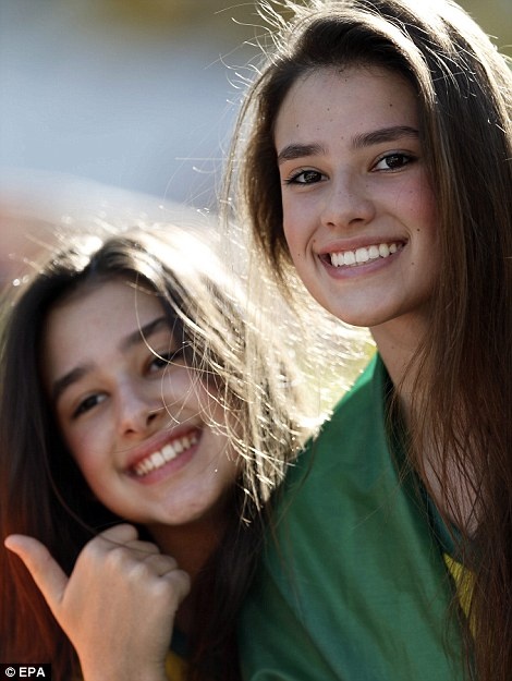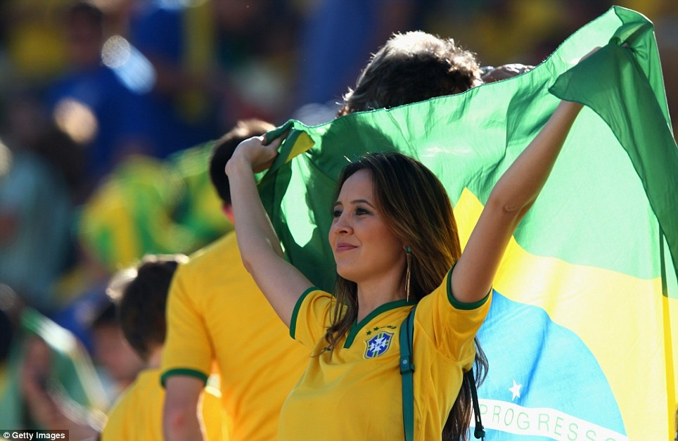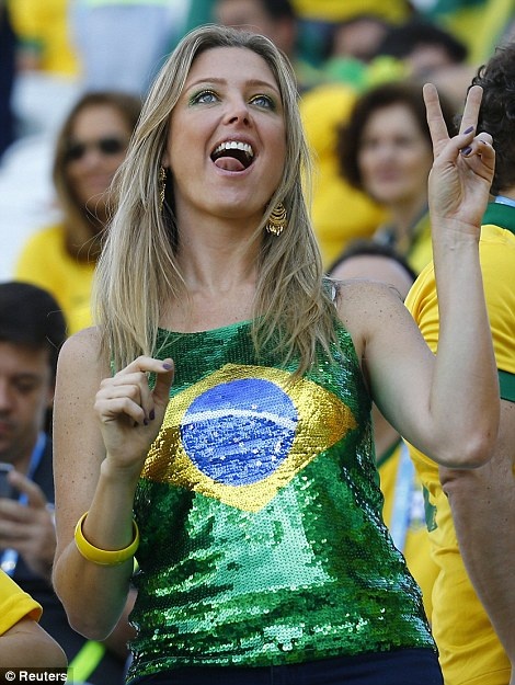 Trên khán đài Arena de Sao Paulo, sự có mặt của những bóng hồng xinh đẹp góp phần giúp bầu không khí thêm cuồng nhiệt ở lễ khai mạc World Cup.