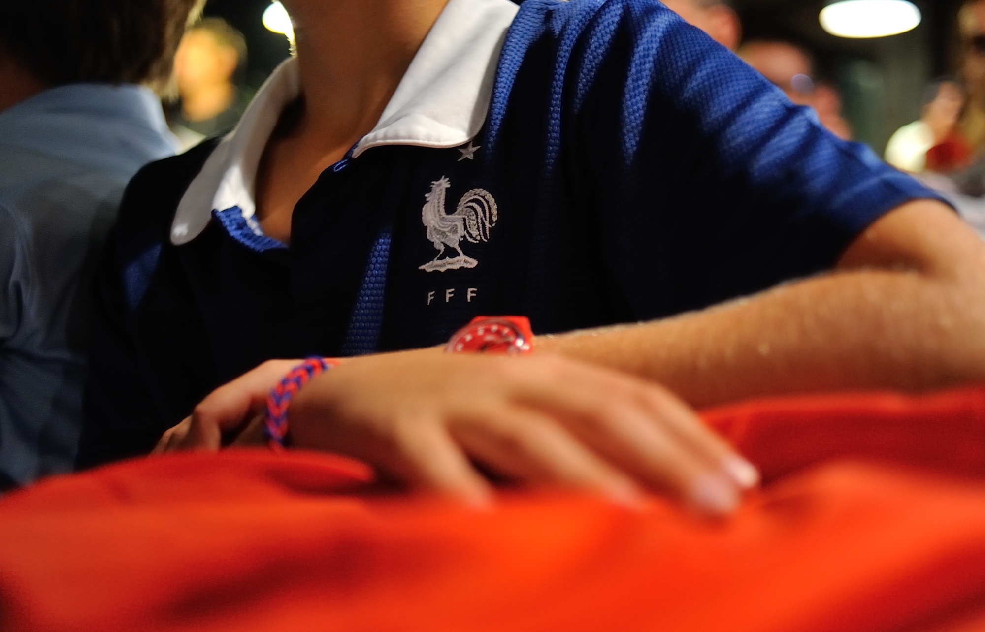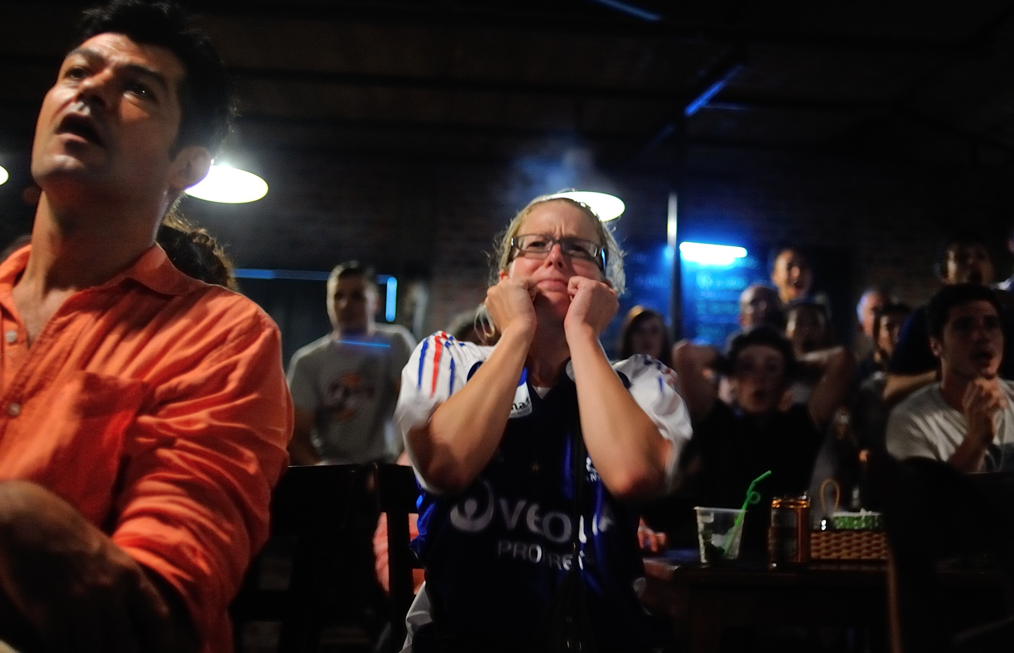 | Ngay từ rất sớm, cách giờ bóng lăn gần nửa tiếng, chỗ ngồi tại quán đã hết do lượng CĐV Pháp tới xem quá đông. |