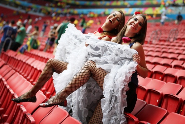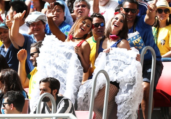 | Hai CĐV đặc biệt của Pháp đến sân vận động Mane Garrincha cổ vũ cho đội quân áo lam trong cuộc chạm trán với Nigeria ở vòng 1/8. |