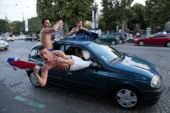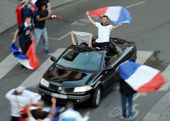 | Người hâm mộ ở thành phố Bordeaux ăn mừng chiến thắng của tuyển Pháp. |