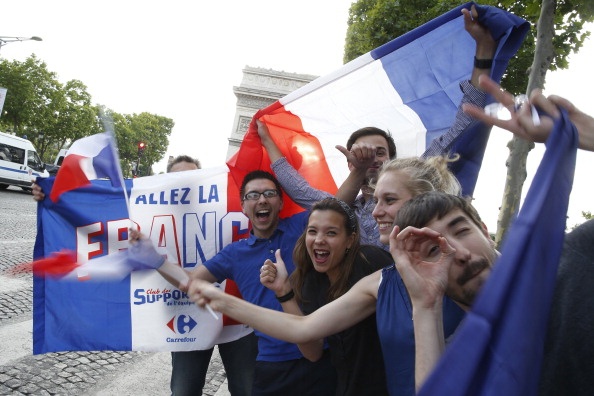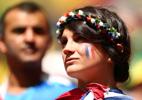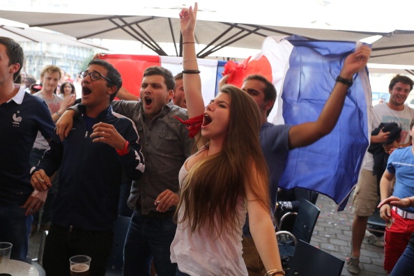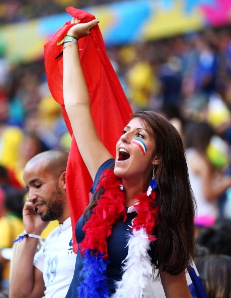 | Niềm vui của một fan Pháp sau khi đội nhà giành chiến thắng 2-0 trước đại diện đến từ châu Phi. |
