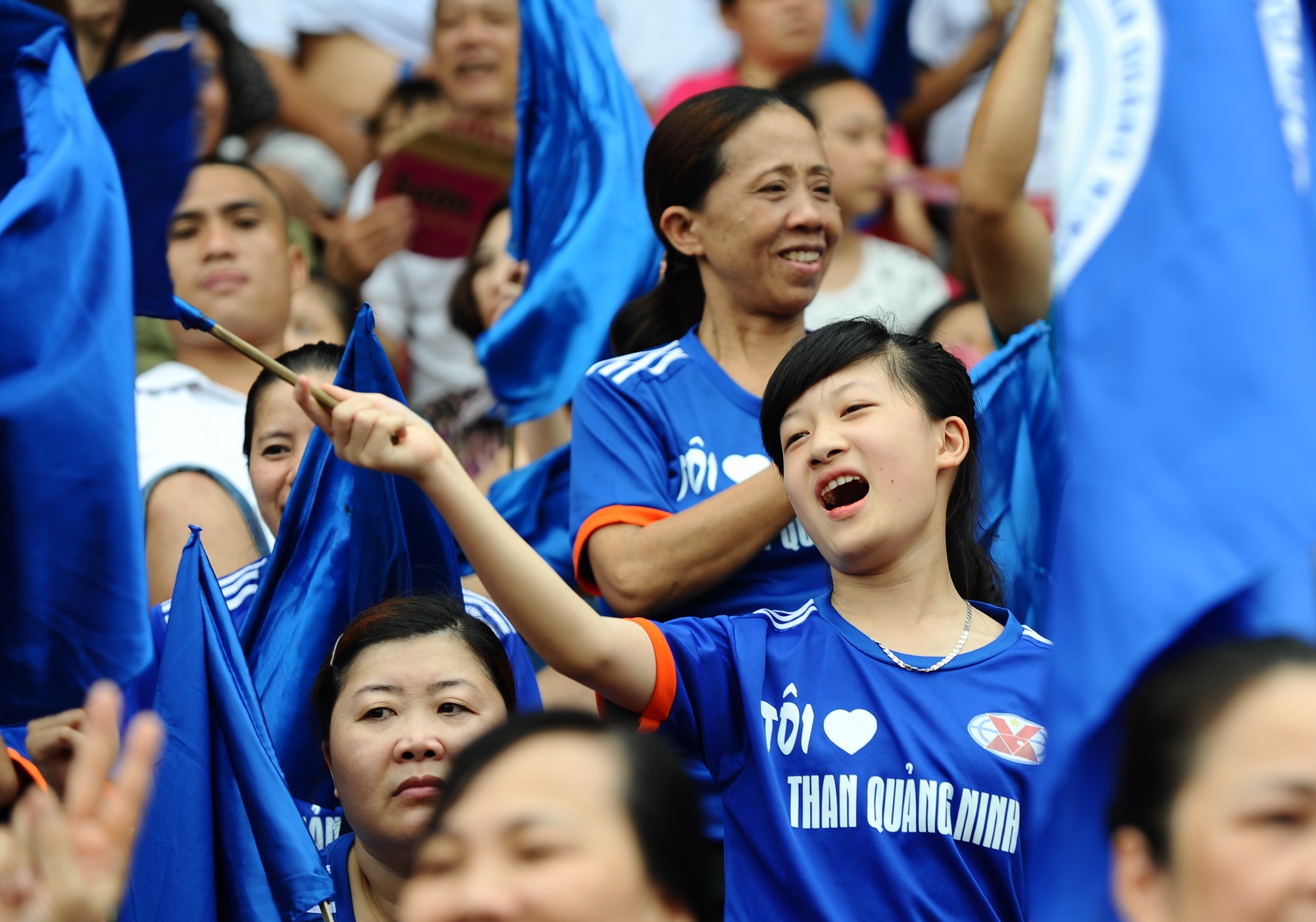 | Lượng CĐV nữ trên khán đài sân Cẩm Phả cổ vũ cuồng nhiệt góp phần làm bầu không khí náo nhiệt hơn. |