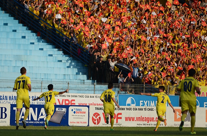 | Chiếm ưu thế trên khán đài nên các cầu thủ xứ Nghệ chơi khá xuất sắc và dẫn đội chủ nhà Hà Nội T&T 2-1 đến phút 90. |
