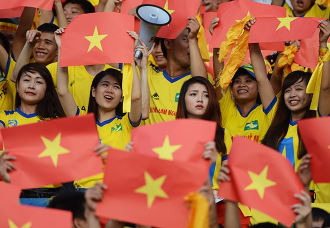 | Cùng bắt nhịp cổ vũ đội bóng thân yêu. Ảnh: Tống Đức Thuận |