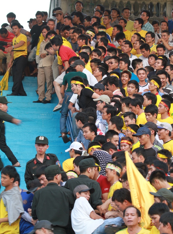 | Trên tầng hai CĐV Thanh Hóa cũng vượt rào. |