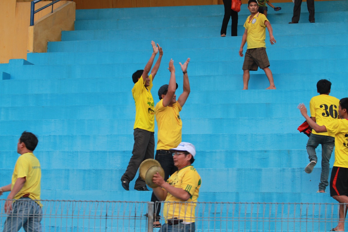 | Hết hiệp một, CĐV Thanh Hóa muốn sang khu khán đài trống để ngồi cho thoải mái. |