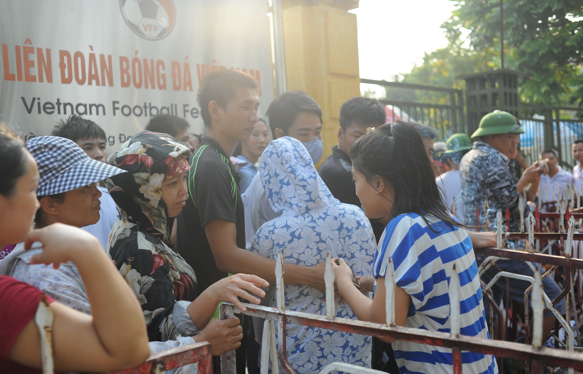 | Phải đến 9h sáng, VFF mới mở cửa bán vé nhưng từ hơn 7h sáng đã có hơn 700 người xếp hàng dài ngay cổng chờ đến lượt mua. Trong số này có không ít cổ động viên đến từ các tỉnh lân cận. Anh Tiến, nhà ở Kinh Môn (Hải Dương) cho biết: “Tôi dậy từ sáng sớm rồi bắt xe lên thẳng đây để mua vé. Tôi rất thích xem U19 Việt Nam bởi vì các cầu thủ chơi bóng rất đẹp mắt và cống hiến chứ không vì tiền bạc hay thứ gì khác. Nếu không mua được vé bán từ VFF tôi sẵn sàng săn vé chợ đen”. |
