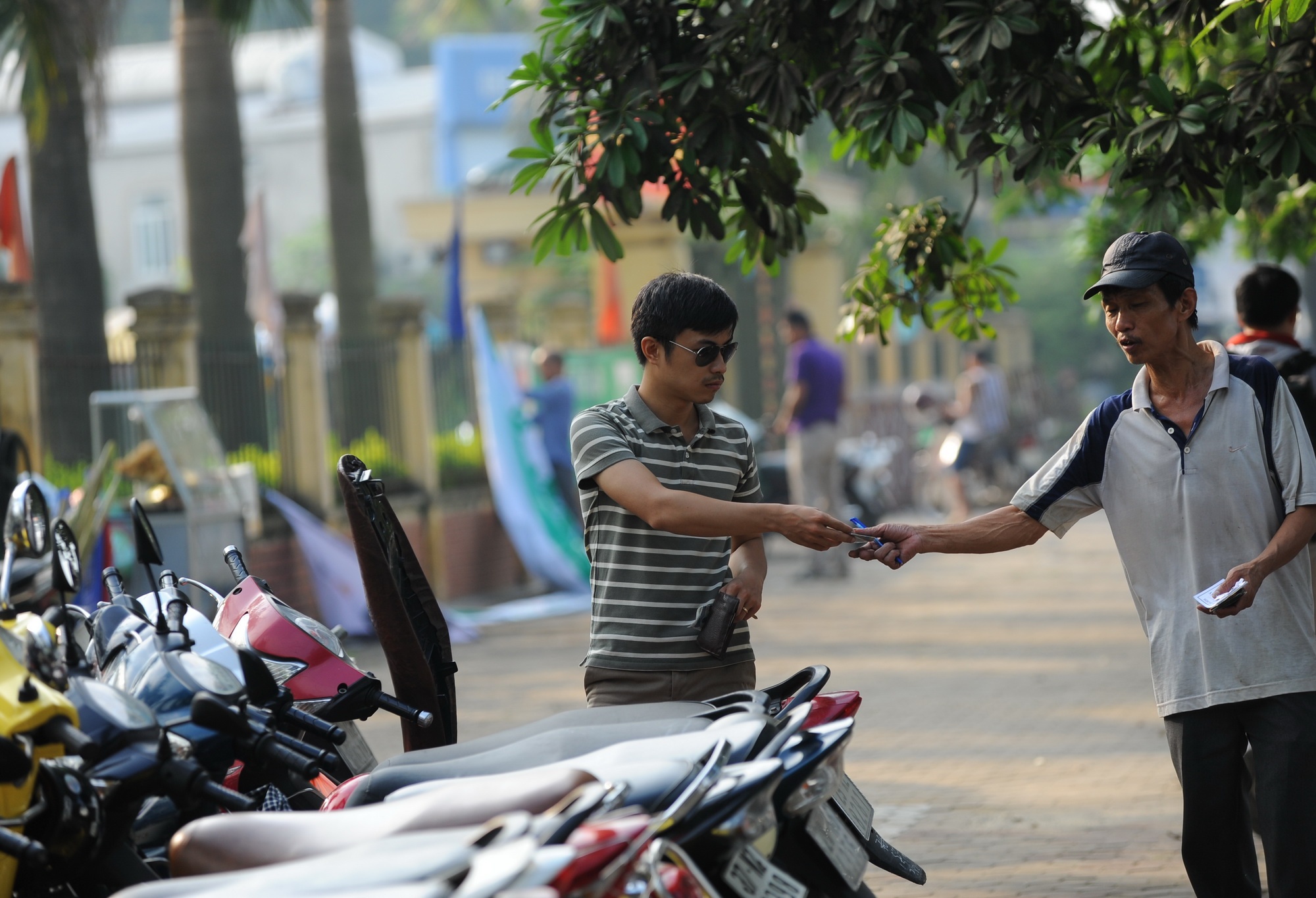 | Dịch vụ gửi xe quanh trụ sở VFF bỗng tăng giá chóng mặt, ngày bình thường giá chỉ 5.000 đồng/xe nhưng hôm nay giá đã nhanh chóng được đẩy lên 20.000 đồng/xe. Thống kê nhanh tại một bãi gửi đã có hơn 200 xe máy tương ứng với số tiền 4 triệu đồng mà người trông giữ xe thu được. |