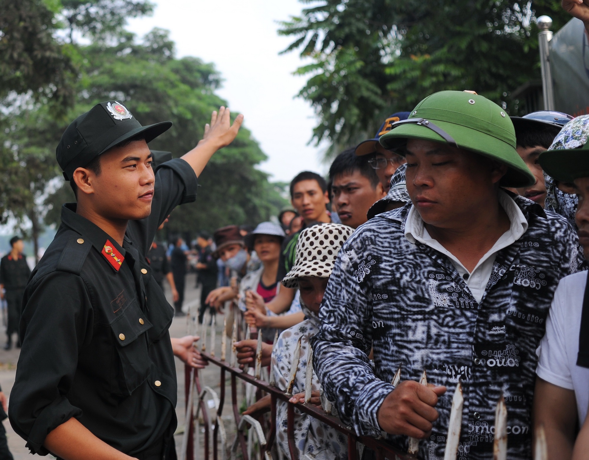 | 2 tiểu đội cảnh sát cơ động quận Bắc Từ Liêm được huy động đến để hỗ trợ VFF phân phối vé trong ngày hôm nay. |