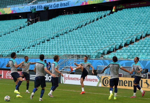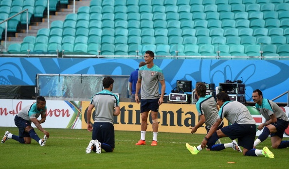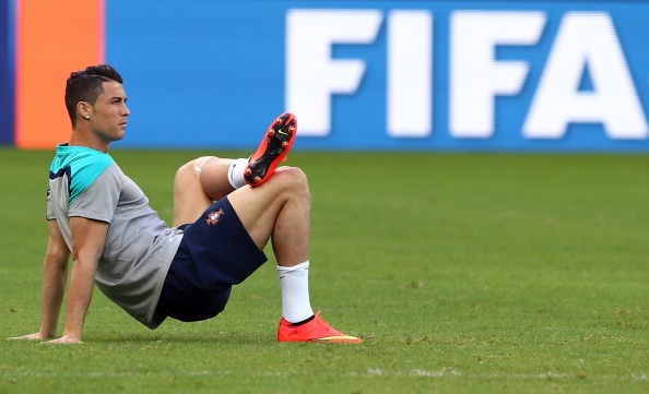 | Hình ảnh Ronaldo xuất hiện trong buổi tập chuẩn bị trận đầu tiên ở World Cup 2014. Những bước di chuyển và động tác của anh trên sân nhận được sự chú ý đặc biệt từ phía người hâm mộ và giới truyền thông. |
