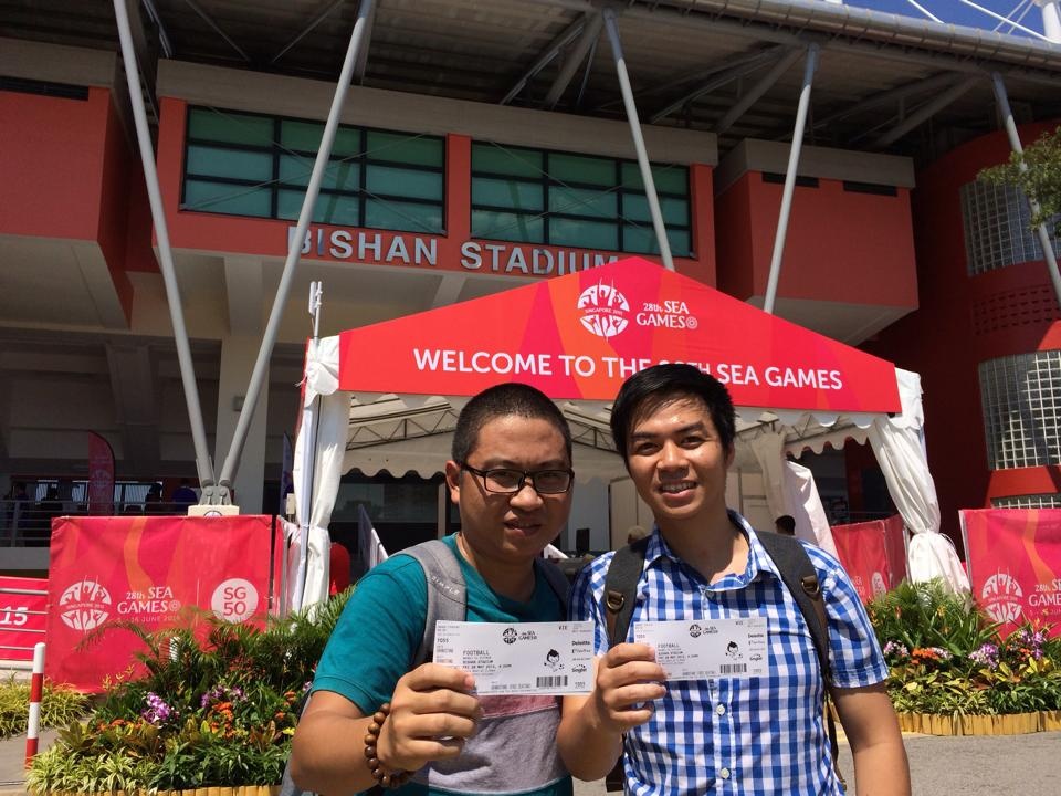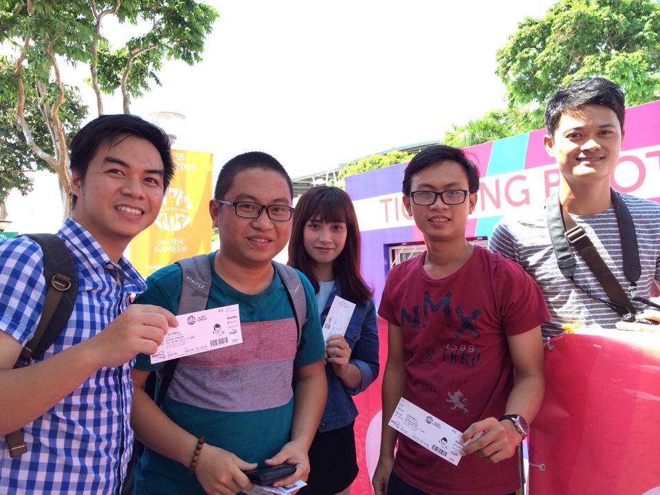 Trước giờ đội nhà thi đấu, anh Quang (26 tuổi) đang học thạc sĩ ngành Thương mại quốc tế trường Curtin, Singapore rất vui khi mua được vé trận U23 Việt Nam - U23 Brunei.