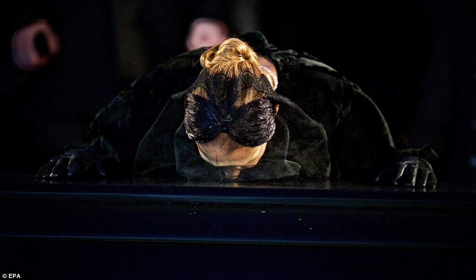 | Celine Dion hôn linh cữu chồng lần cuối trước khi an táng. |
