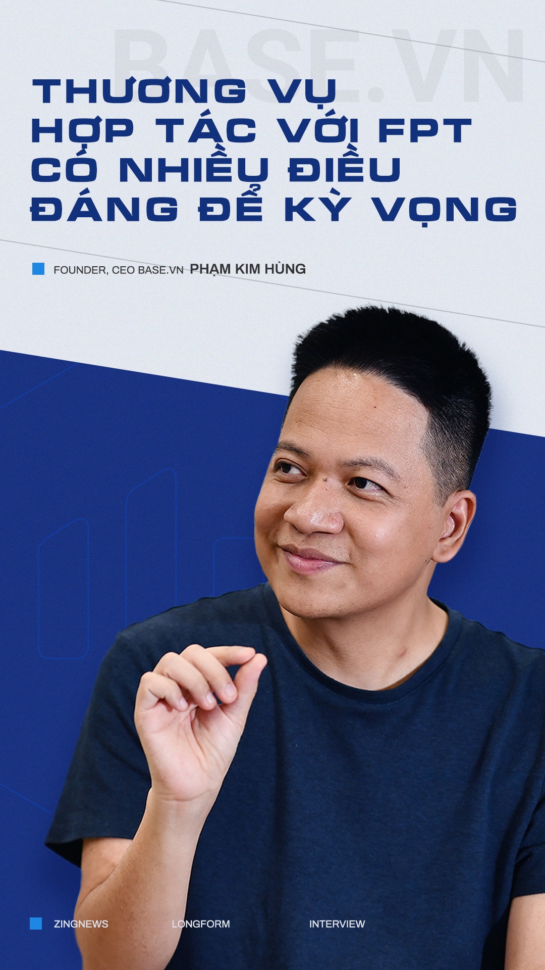 - Có một điểm cần làm rõ, Base luôn có nền tảng tài chính ổn định. Ngay trong thời dịch, công ty vẫn có mức tăng trưởng ít nhất là gấp 2 lần năm vừa qua. Tuy nhiên, nếu muốn phát triển nhanh hơn, hiện thực hóa được mục tiêu sớm hơn, tôi tin Base phải đồng hành cùng FPT. Có nhiều kế hoạch của Base sẽ cần đến 10 năm để hoàn thiện, nhưng kết hợp với FPT, tôi tin chỉ mất 2-3 năm.