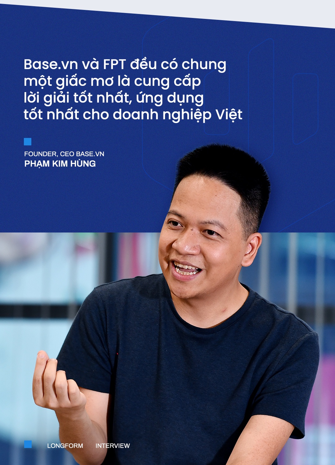 Trong cuộc chia sẻ ấy, anh Bình có nói về mục tiêu xây dựng một ứng dụng dành cho doanh nghiệp. Tôi nhận thấy sản phẩm mà anh Bình muốn làm, tầm nhìn của anh có nhiều điểm tương đồng với con đường Base đã đi trong suốt 5 năm qua. Thành thực là Base và FPT có chung một ước mơ, đó là cung cấp lời giải tốt nhất, ứng dụng tốt nhất cho doanh nghiệp Việt Nam.