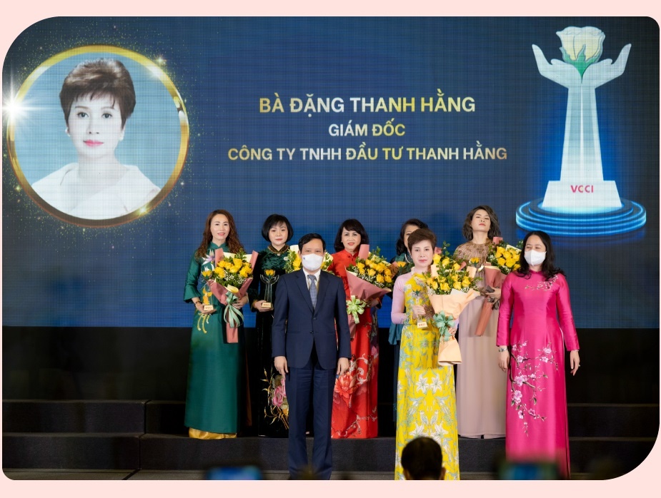 Bà Đặng Thanh Hằng - Chủ tịch Tập đoàn Thanh Hằng - được vinh danh là "Nữ doanh nhân Việt Nam tiêu biểu - Cúp bông hồng vàng" năm 2021 nhờ những thành tích xuất sắc, cùng nỗ lực chủ động thích ứng, vượt qua thách thức trong bối cảnh đại dịch Covid-19.