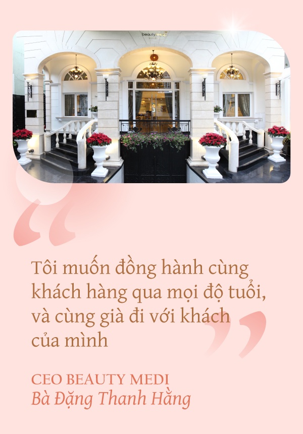 - Ngay từ khi thành lập, chúng tôi đã định vị thương hiệu Thanh Hằng Beauty Medi là cao cấp, dành cho những khách hàng kỹ tính và tinh tế trong làm đẹp, yêu cầu rất cao về tay nghề bác sĩ. Họ có thể trải nghiệm dịch vụ cũng như chất lượng làm đẹp tương đương các trung tâm hàng đầu ở nước ngoài.