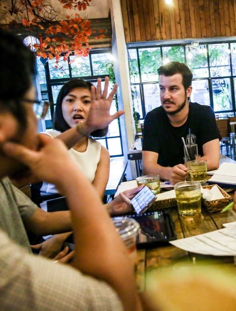 | Trong lần ghé thăm nhà máy đợt này, Alex đi cùng một số nhân viên trong đội marketing. Anh cùng giám đốc nhà máy thảo luận về một số công thức ủ bia mới từ các loại trái cây địa phương như thanh long, sầu riêng, bưởi... và kế hoạch xuất xưởng sản phẩm, cung ứng cho các cửa hàng, nhà phân phối trên toàn quốc. |