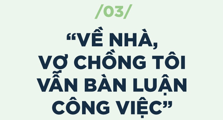 Thường chúng tôi chỉ làm việc ở công ty, nhưng nhiều khi về nhà, vợ chồng tôi vẫn bàn luận công việc, về các chiến lược kinh doanh hay phát triển đội ngũ. Tôi cảm thấy mình may mắn khi giữa 2 người có sự thấu hiểu và đồng cảm rất lớn.