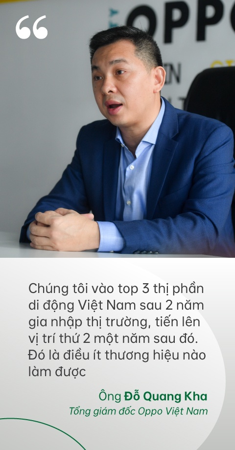 Sau 3 năm gia nhập thị trường Việt Nam, Oppo vươn lên vị trí thứ 2 thị phần smartphone trong nước. Ông Đỗ Quang Kha gọi đó là “điều ít thương hiệu làm được lúc bấy giờ”.