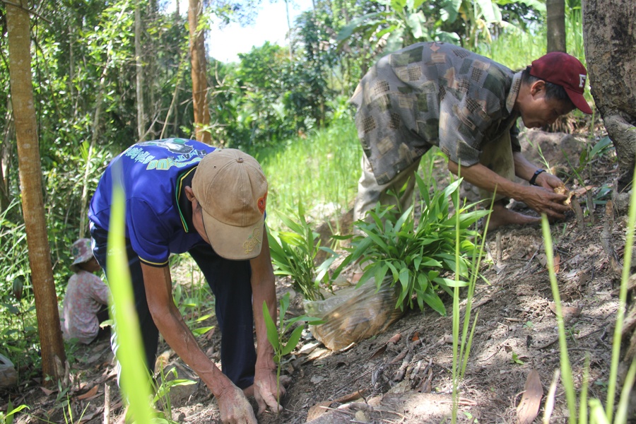 Ông Tri cho biết: "Vào sáng nay, khi tôi và anh Lang chuẩn bị đưa cây keo giống đi trồng ở đám rẫy gần nhà, thì cha đòi đi theo. Cha nói lâu rồi không đi rừng nên cái tay, chân mỏi lắm. Qua quan sát, thì dù rất lạ với cách trồng loại cây này, thế nhưng sau khi được hướng dẫn, 2 cha con người rừng trồng khá thành thạo".