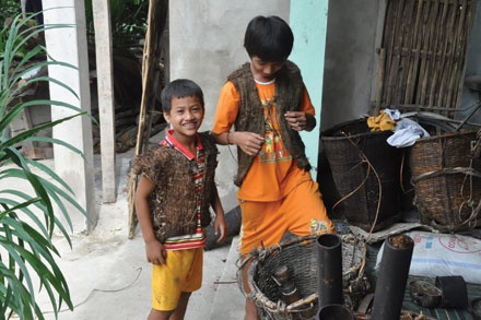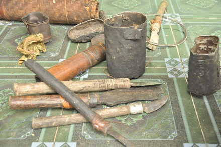 | Những vật dụng tự chế tác của cha con người rừng giống như thời kỳ đồ đá. |