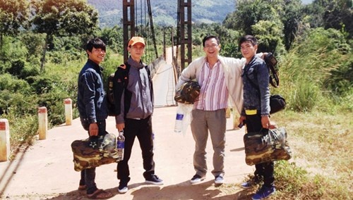 Ngô Kim Lai (thứ 2 từ trái sang) trong một chuyến đi Tây Nguyên tìm đông trùng hạ thảo tự nhiên. Ảnh: Tiền Phong. |