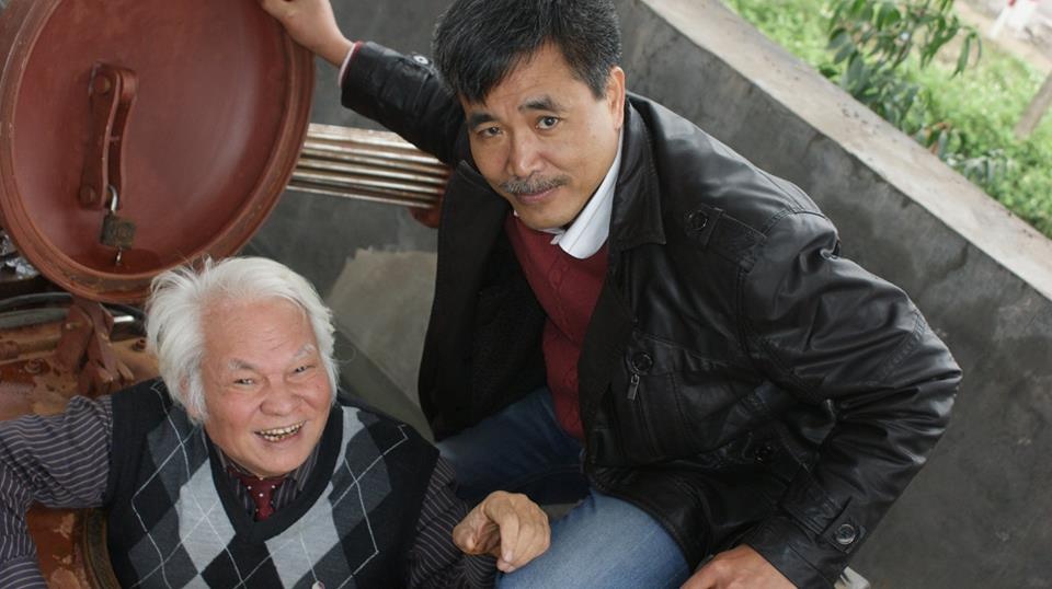 | Doanh nhân Nguyễn Quốc Hòa (phải) chụp ảnh cùng tiến sĩ Nguyễn Văn Khải trong một lần thử nghiệm trước đó. Ảnh do nhân vật cung cấp. |