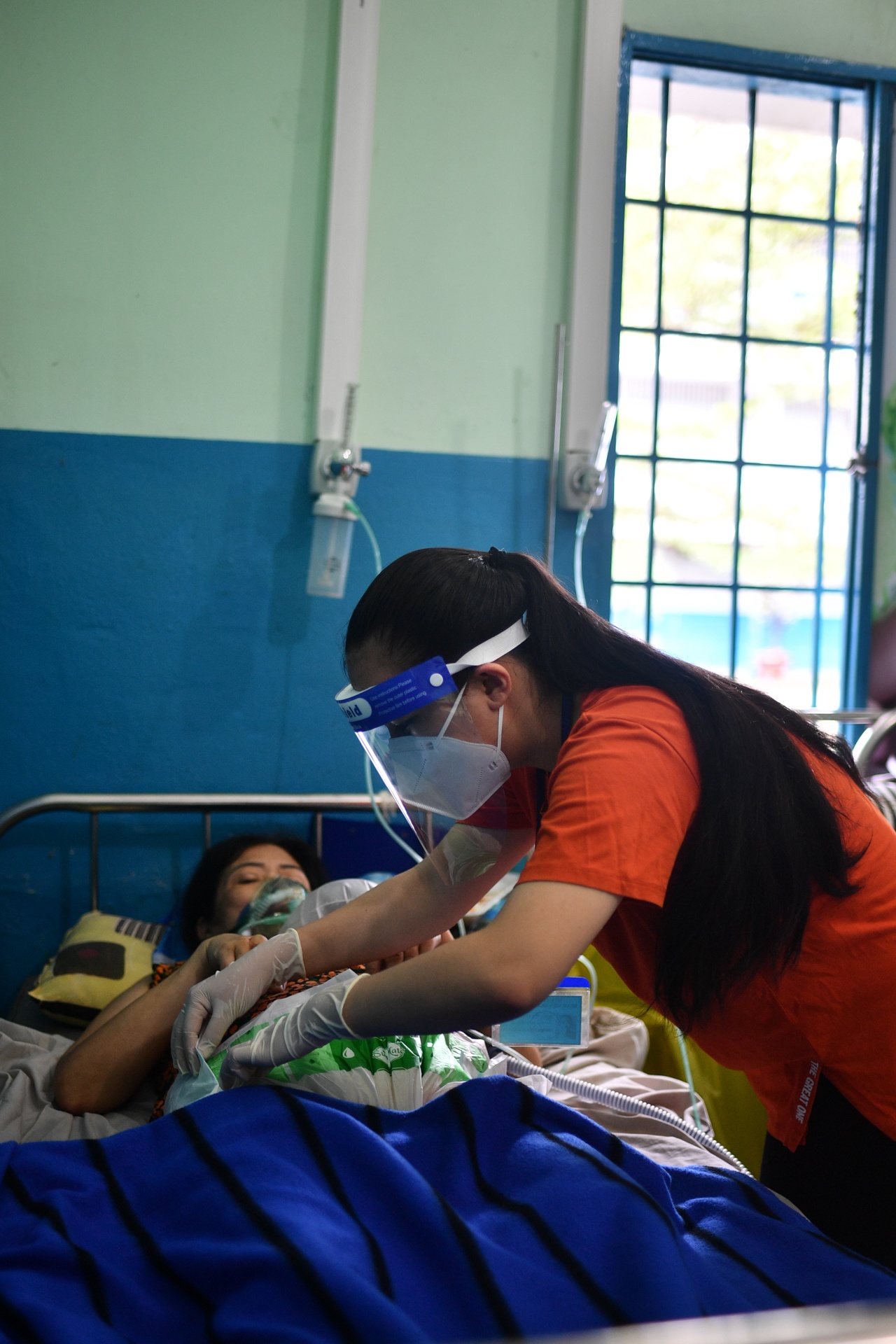 | Công việc của chúng tôi thường là hỗ trợ bệnh nhân ăn uống, đi vệ sinh, thay bình oxy hoặc đôi khi là trò chuyện để giúp họ giải tỏa tinh thần. Những công việc chuyên môn về điều trị Covid-19 do các bác sĩ, điều dưỡng phụ trách. |