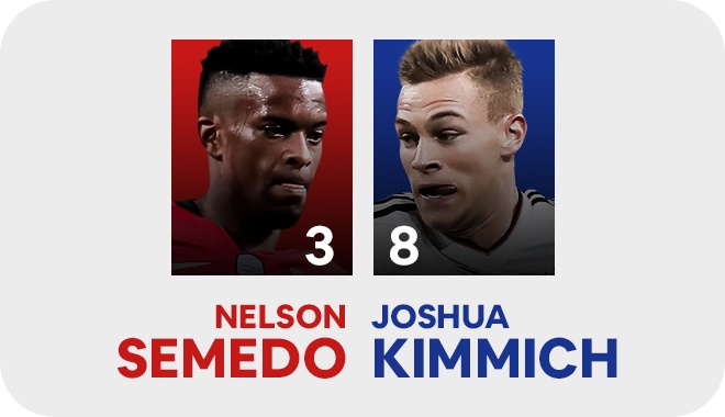Nelson Semedo chơi tệ nhất đội hình Bồ Đào Nha. Anh liên tục mắc lỗi vị trí, từ đó mở ra khoảng trống để Robin Gosens thoải mái áp sát khung thành. Ở bên kia chiến tuyến, cầu thủ chạy cánh phải của Đức, Joshua Kimmich cho thấy màn trình diễn ở đẳng cấp cao khi anh góp dấu giày trong cả 4 bàn thắng của "Cỗ xe tăng".