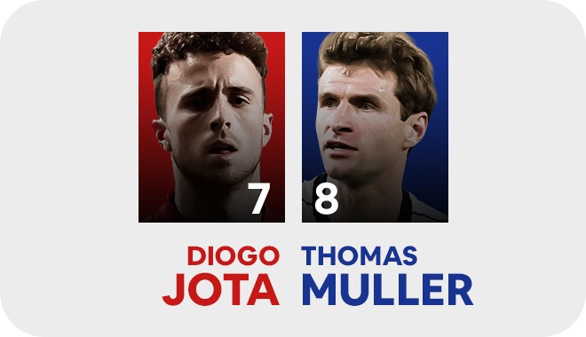 Diogo Jota vẫn có tầm ảnh hưởng lớn trong lối chơi của Bồ Đào Nha, khi anh đóng góp 1 bàn, 1 kiến tạo. Thomas Muller cũng có ngày thi đấu khá tốt. Anh thực hiện 4 đường chuyền mở ra cơ hội cho đồng đội, con số nhiều nhất trên sân.