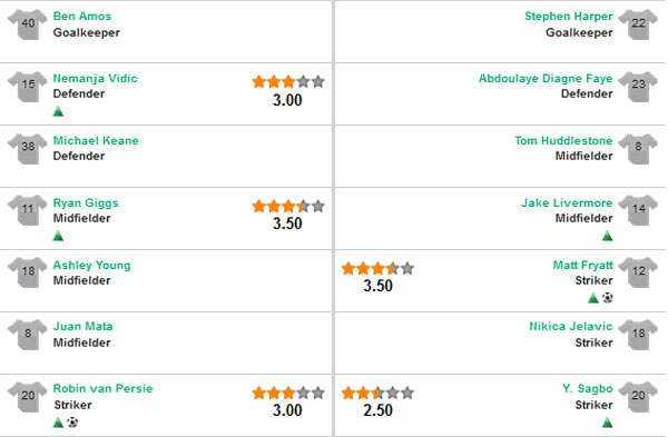 Điểm của các cầu thủ trong trận M.U – Hull City.