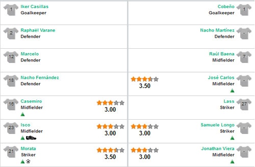 Với lợi thế sân nhà cùng sự xuất sắc của "song sát" Ronaldo – Bale, đội quân của HLV Ancelotti giành chiến thắng thuyết phục 5-0 trước Rato Vallecano. Trong đó, CR7 là cầu thủ mở tỷ số. Còn với Gareth Bale, tiền vệ chạy cánh người xứ Wales lập cú đúp và có một pha kiến tạo.