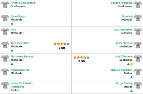 Điểm cụ thể của cầu thủ trận MU – Arsenal (theo Goal)