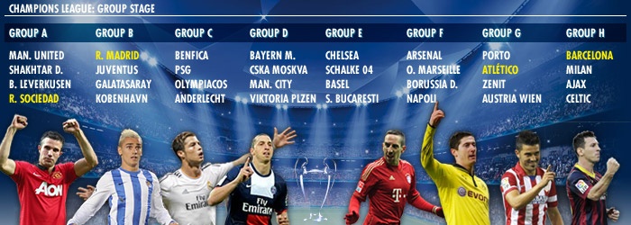 | Kết quả bốc thăm chia bảng ở Champions League mùa giải 2013/14. |