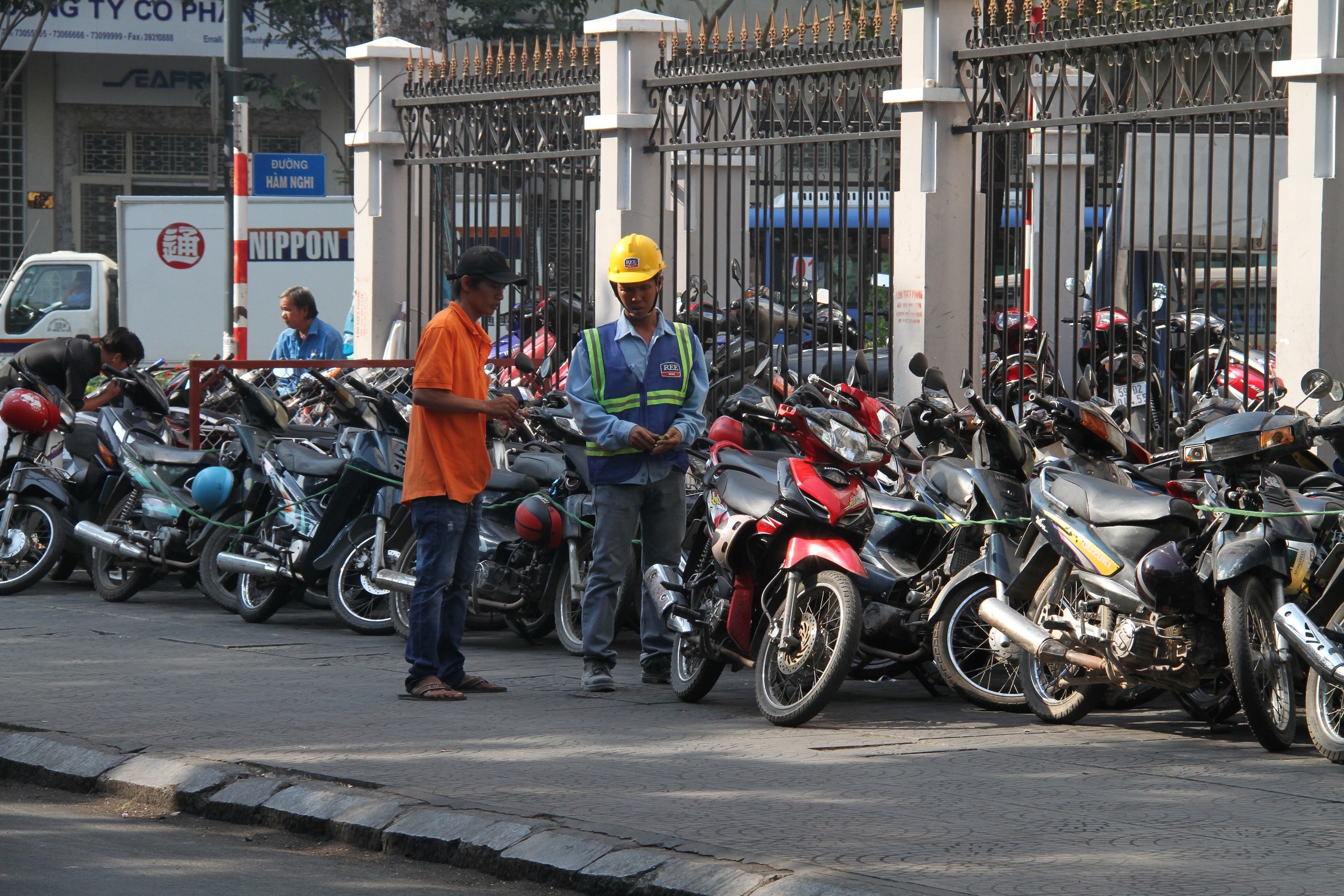 | Một bãi đậu xe tự phát trên vỉa hè đường Pasteur (quận 1). Ảnh: Hoàng Bình |