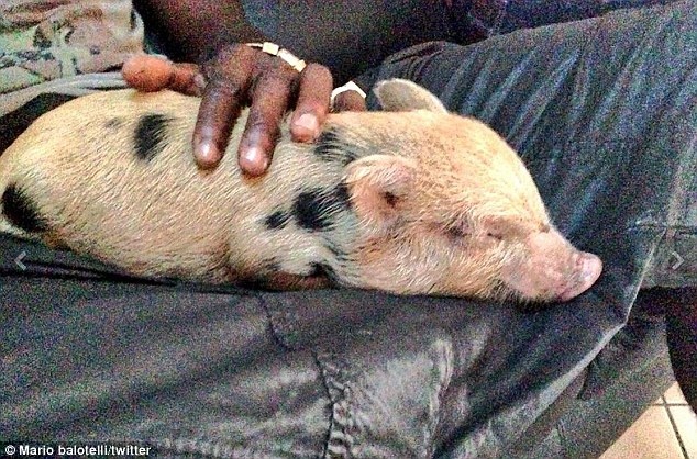Mới đây, "ngựa chứng" Mario Balotelli khoe với hơn 1 triệu người theo dõi trên Twitter thú cưng của mình. Không giống như các đồng nghiệp thích chơi chim cảnh, chó cảnh, Balotelli chọn nuôi một chú heo con. Trong bức ảnh, có vẻ như "siêu quậy" đang bế thú cưng trong lòng mà cưng nựng, vuốt ve.