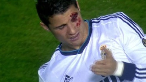 Cuối năm 2012, một bên mắt của CR7 đầm đìa máu sau pha đánh củi chỏ của cầu thủ đối phương. Thế nhưng, ngay sau khi được các nhân viên y tế băng ở mắt để cầm máu, CR7 lại tiếp tục thi đấu trong sự lo lắng của người hâm mộ.