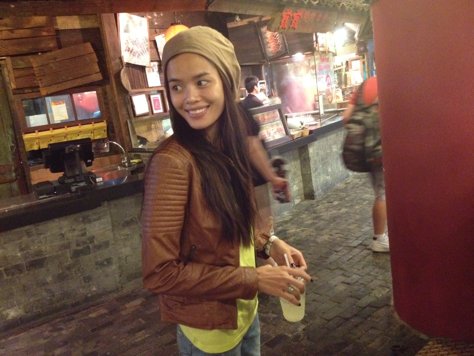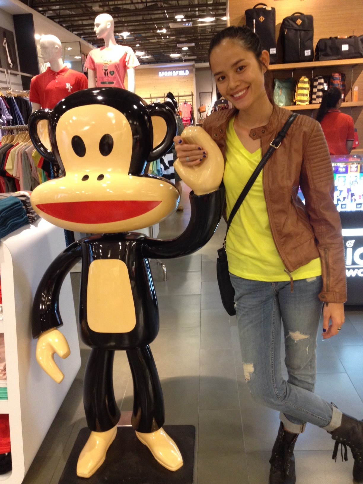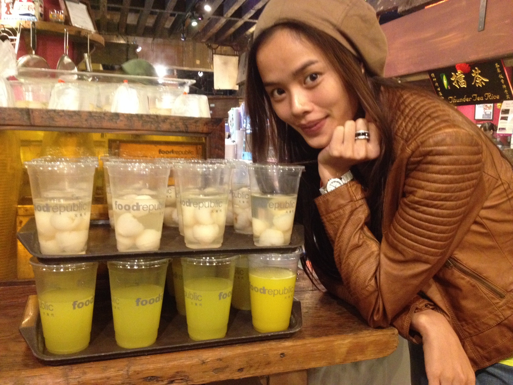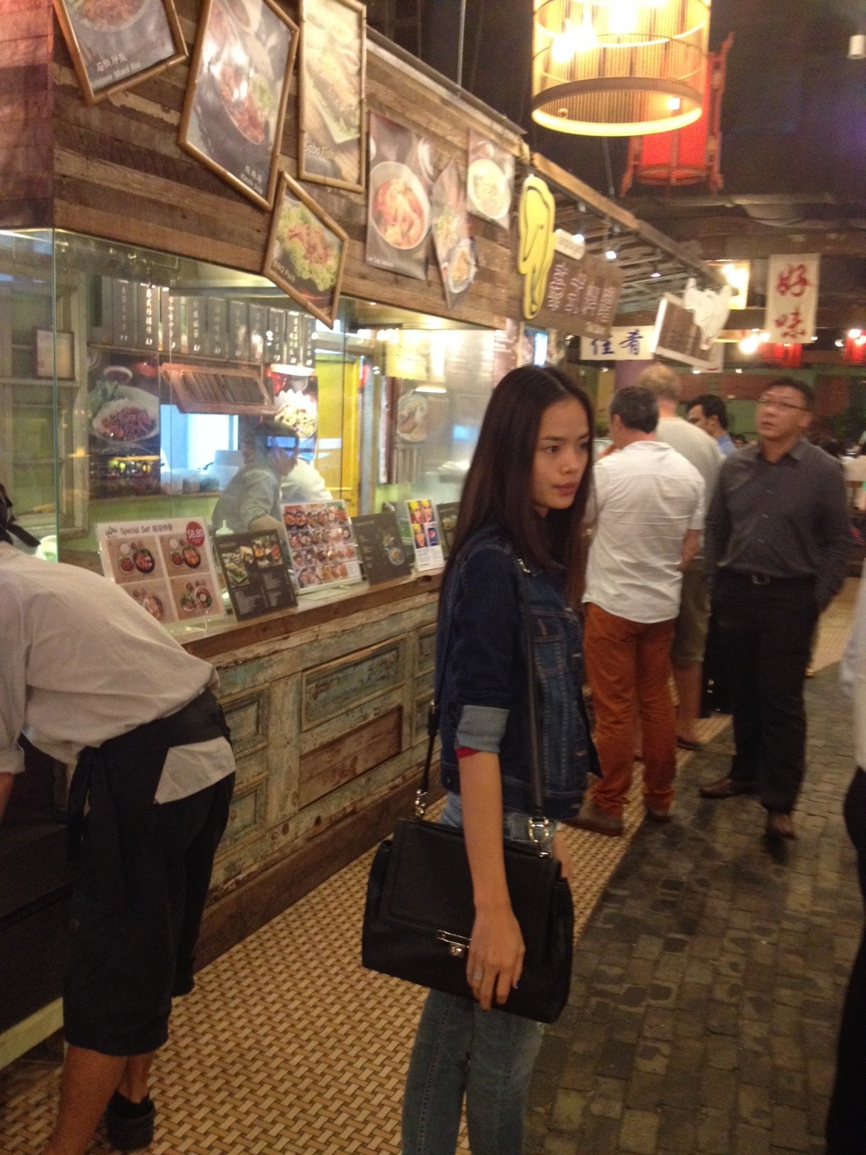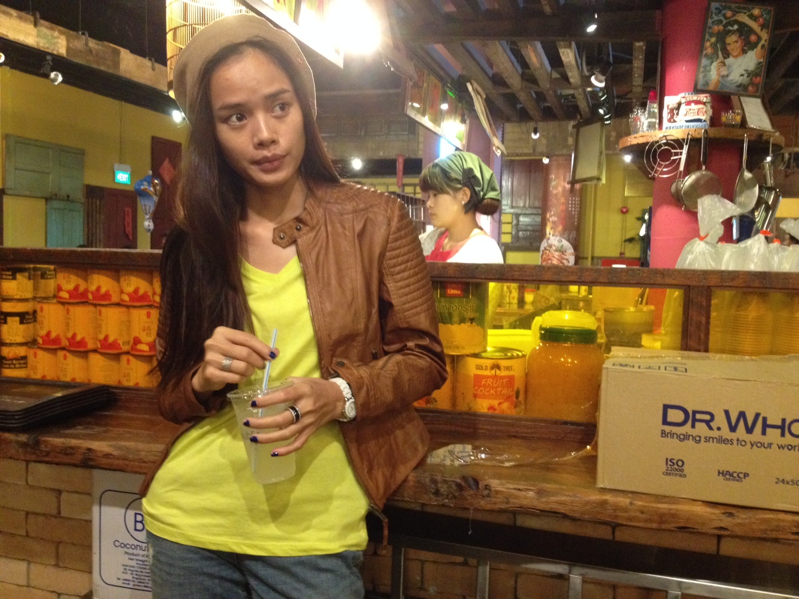 Thu Hiền tạo dáng bên những món ăn lạ, ngộ nghĩnh của Singapore.