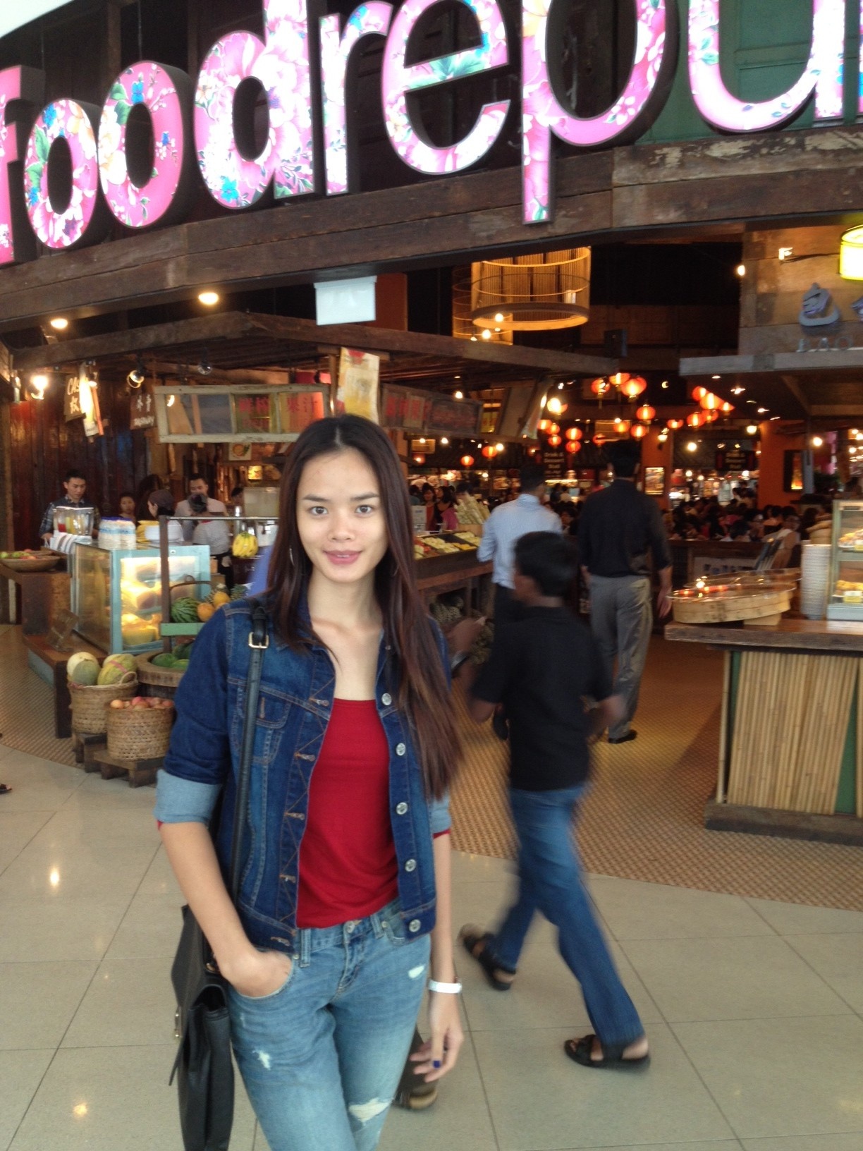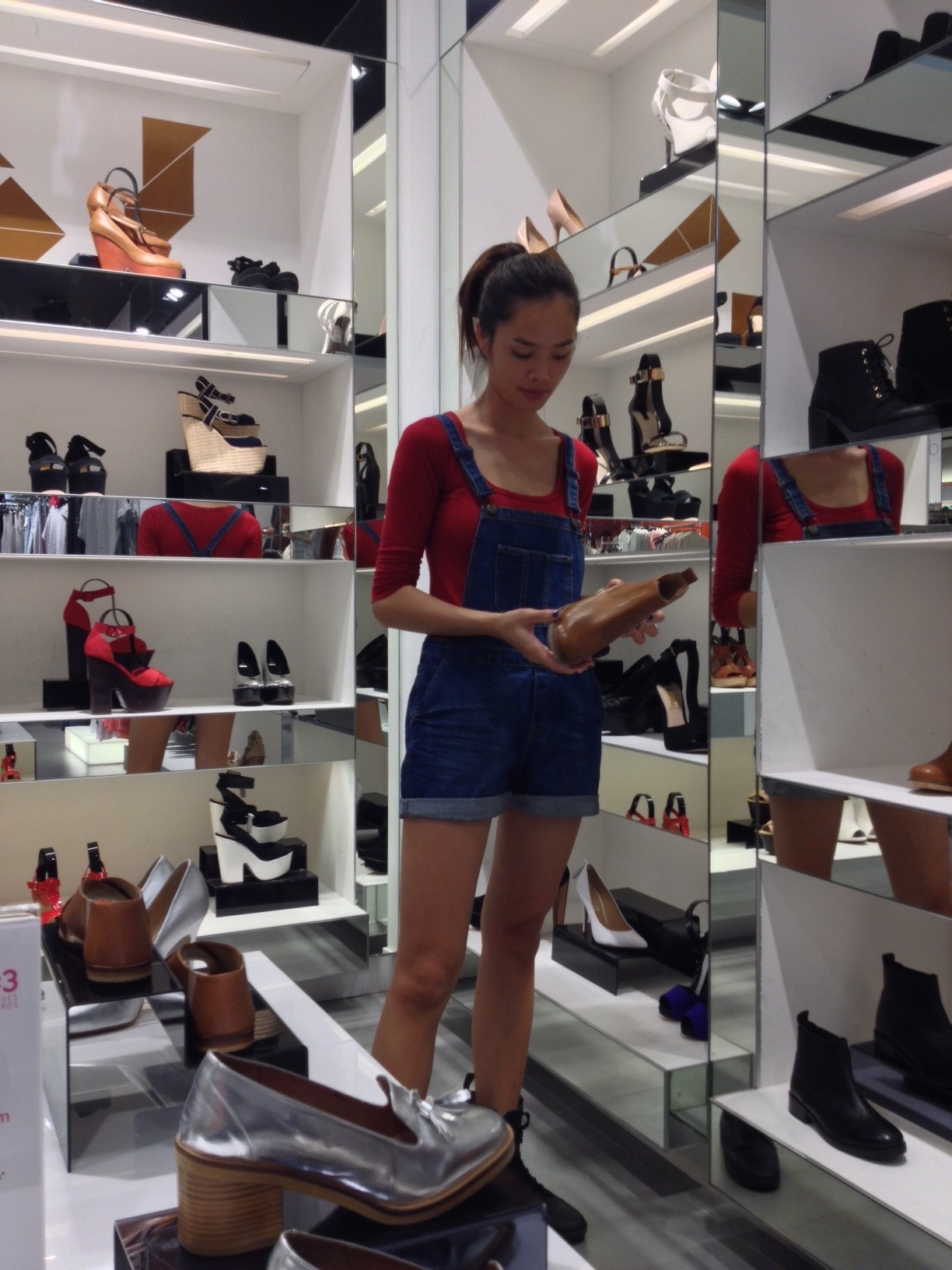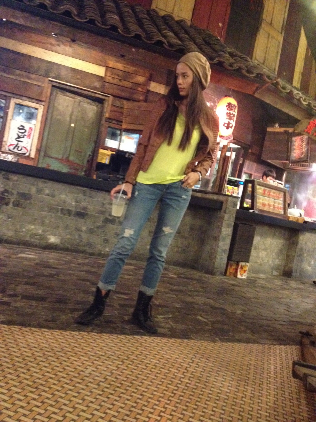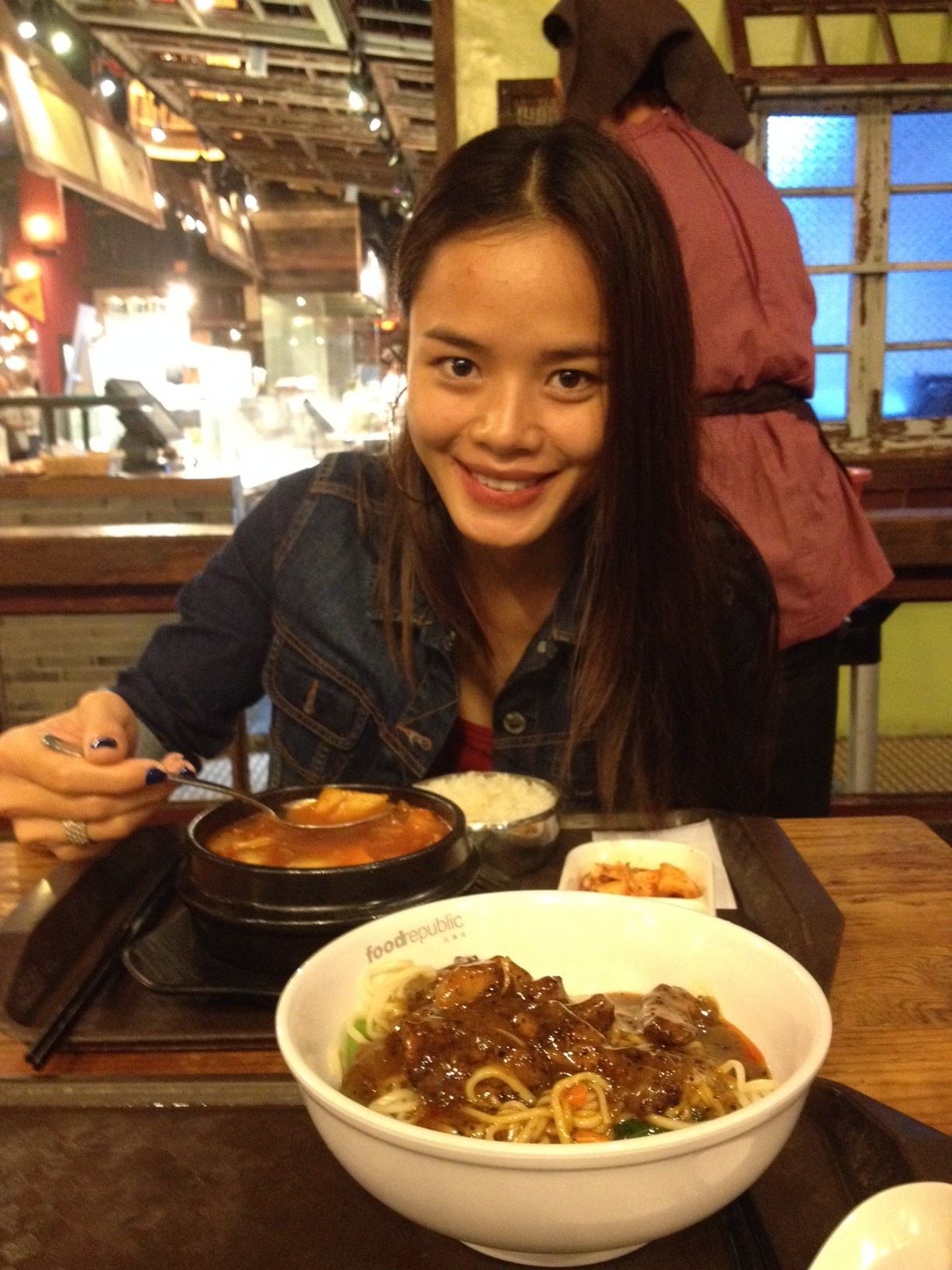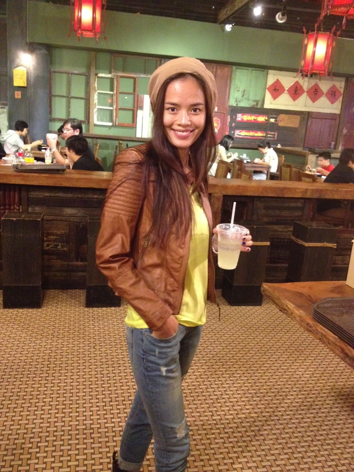 Thu Hiền tạo dáng bên những món ăn lạ, ngộ nghĩnh của Singapore.