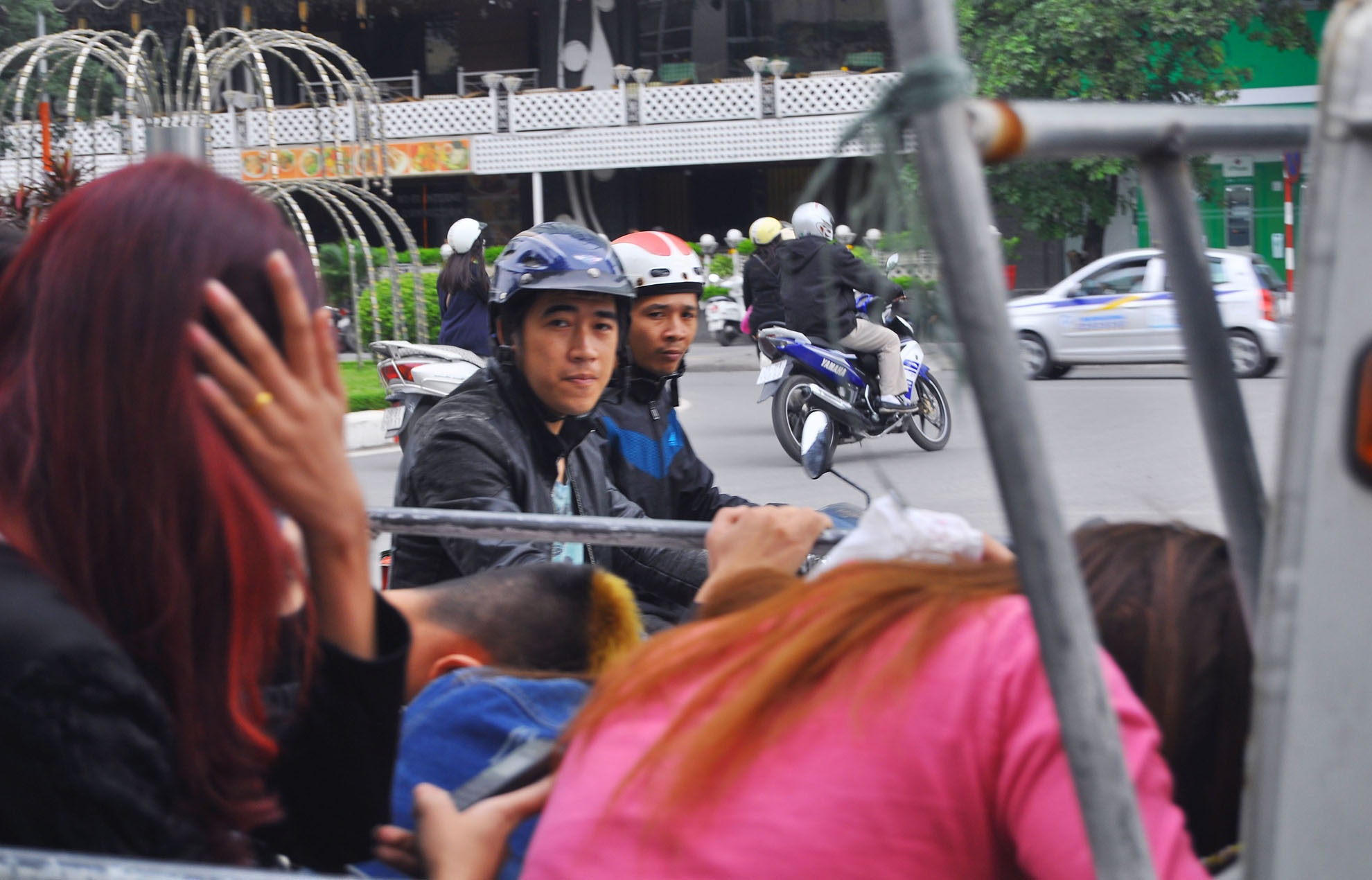 | Những chân dài này thường là các cô gái tỉnh lẻ lên Hà Nội tìm việc và sống trong các xóm trọ ở gần nơi có nhiều tụ điểm ăn chơi, quán karaoke, nhà nghỉ. Họ thường có một chủ đứng ra “đỡ đầu” để hành nghề tiếp bia, rượu trong các quán karaoke. Tại chốt ngã 3 Nguyễn Chí Thanh - Huỳnh Thúc Kháng, lực lượng chức năng đã phát hiện, kiểm tra nhiều "quái xế" chở quá số người, không thực hiện các quy định khi tham gia giao thông. Theo đó, phương tiện của những quái xế này thường là xe Dream, Wave không có giấy tờ chứng minh nguồn gốc xuất xứ. Nhiều tài xế không xuất trình được giấy phép lái xe. |