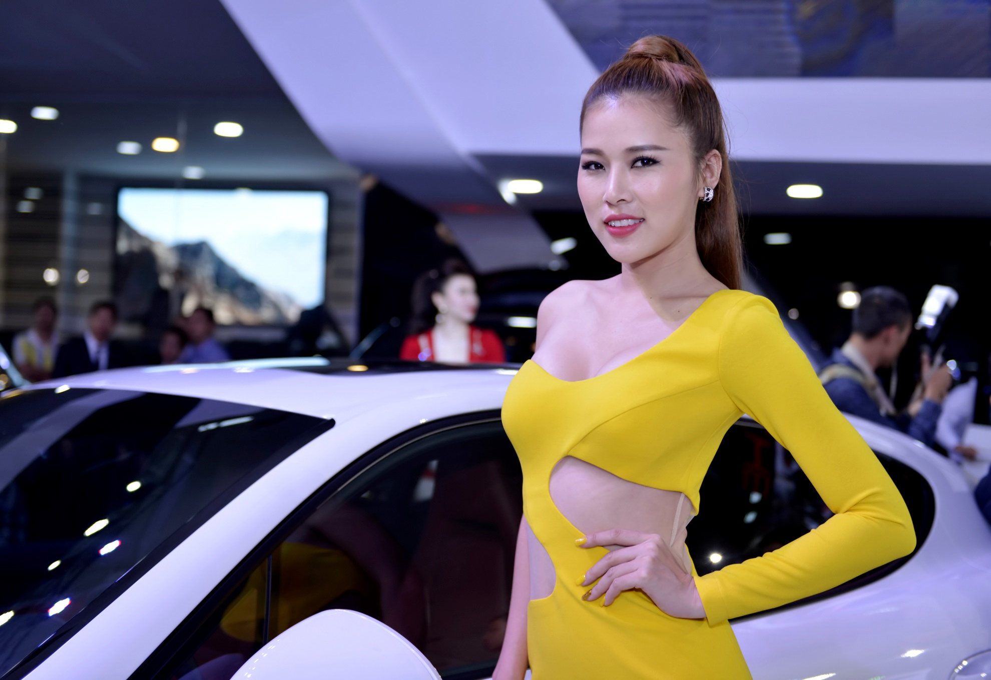 Cùng với những chiếc xe sang hào nhoáng, dàn người đẹp xuất hiện tại các gian hàng chính là điểm sáng hút khách tham quan tại triển lãm ôtô quốc tế tổ chức tại Giảng Võ, Hà Nội.