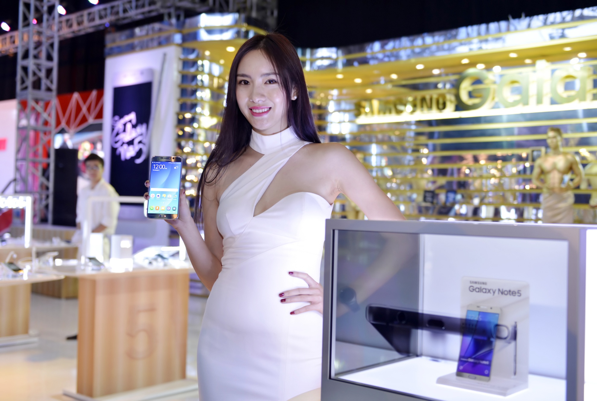 Vietnam International Motor Show 2015 còn có một số gian hàng của các hãng công nghệ và sản phẩm phụ trợ. Trong hình là người đẹp của một thương hiệu điện thoại. Triển lãm sẽ diễn ra từ 9/10 đến 13/10 tại Trung tâm triển lãm Giảng Võ, Hà Nội.