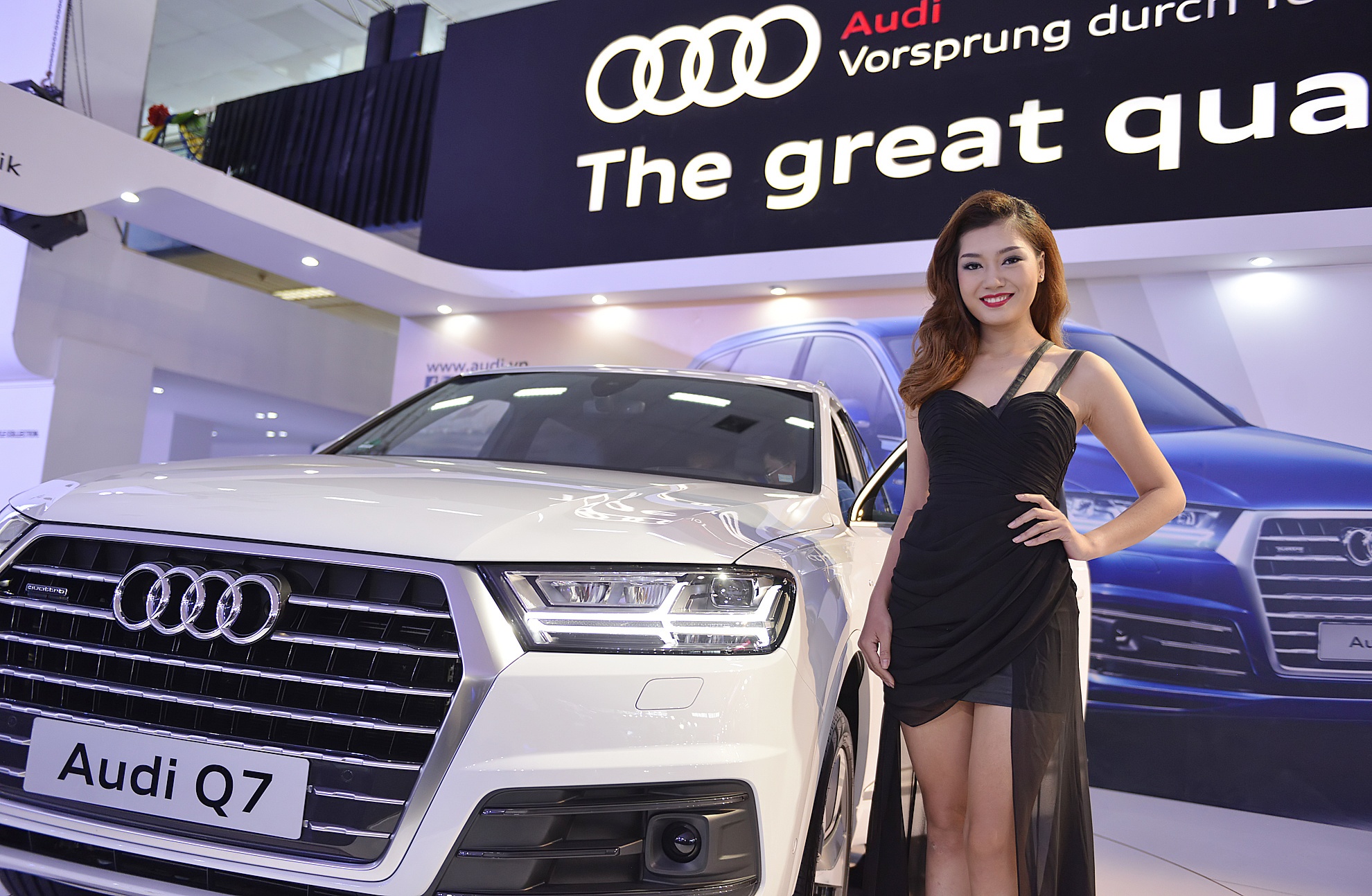 | Audi cũng là hãng sở hữu đội ngũ đại sứ thương hiệu hùng hậu. Trong buổi khai mạc sáng 9/10, hoa hậu Ngô Phương Lan, á hậu Dương Tú Anh và nghệ sĩ múa Linh Nga cùng góp mặt, trong khi người mẫu Thúy Hạnh đảm nhận vai trò MC. |
