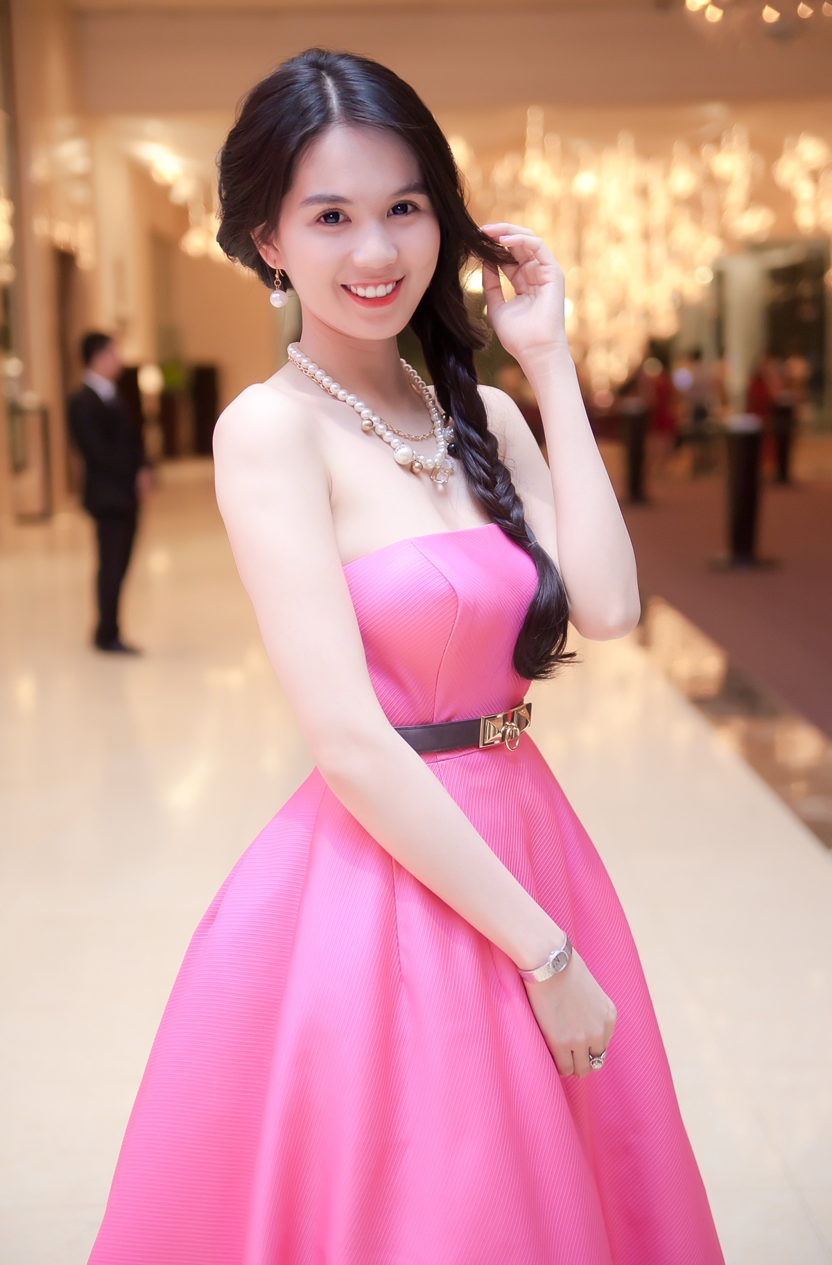 | Xuất hiện với tư cách bà chủ, Ngọc Trinh diện trang phục đầm hồng vô cùng sang trọng. Người đẹp khéo léo khoe được làn da trắng hồng mịn màng. |