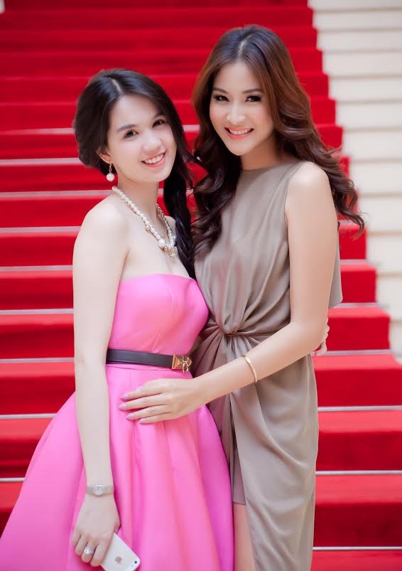 | Ngọc Trinh và quý bà Thu Hoài. |