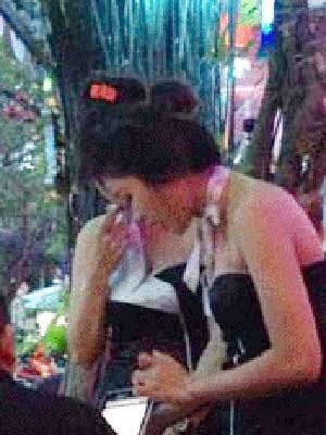 Chỉ tay qua phía bên kia đường là quán Nhật Nguyệt 2, Phương Anh bảo: “Bạn em đứng ở quán bên kia. Thu nhập cũng sống được. Lúc đầu em ngửi mùi thuốc lá không quen nhưng riết chịu đựng được. Nhiều quán diện tích nhỏ, khách đốt thuốc và nhả khói nhiều quá, đứng cách khoảng một mét cũng không nhìn rõ mặt nhau”.