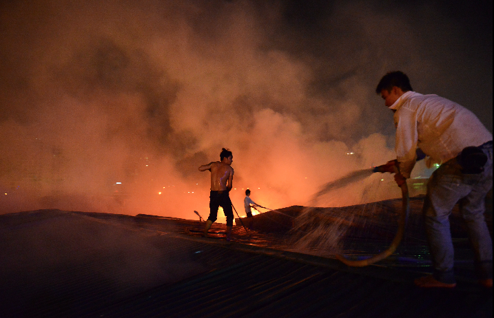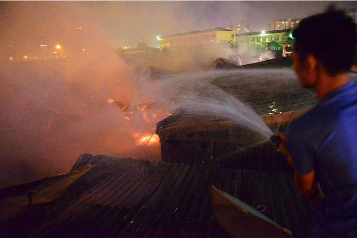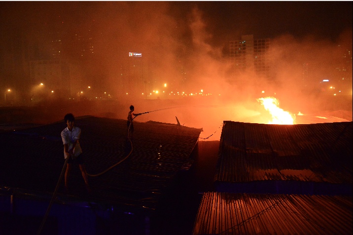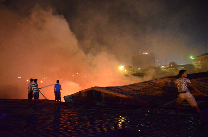 Các gian nhà đều được làm bằng chất liệu nhẹ, dễ cháy nên ngọn lửa càng lúc càng bùng lên rất nhanh. Khu vực này còn có một xưởng gỗ nằm chính giữa nên đám cháy càng lúc càng bén to.