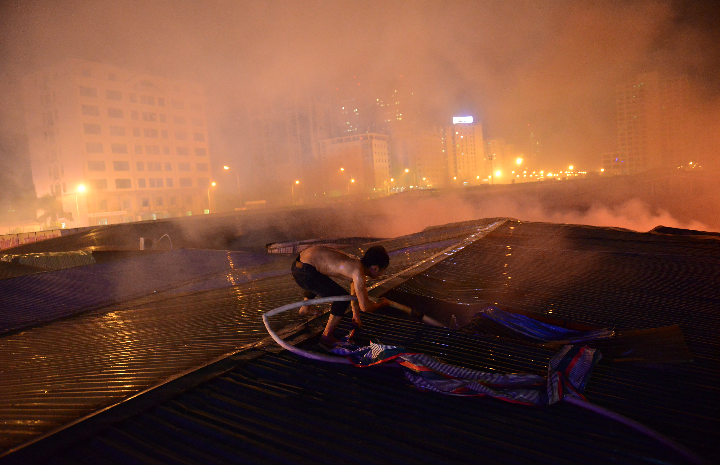 | Nhận thấy sự nguy hiểm và độ lây lan khủng khiếp, 22h45 phút, một số thanh niên là công nhân và người làm việc khu vực này đã huy động dây dẫn nước từ toà nhà Keangnam kéo sang để hỗ trợ dập lửa. |