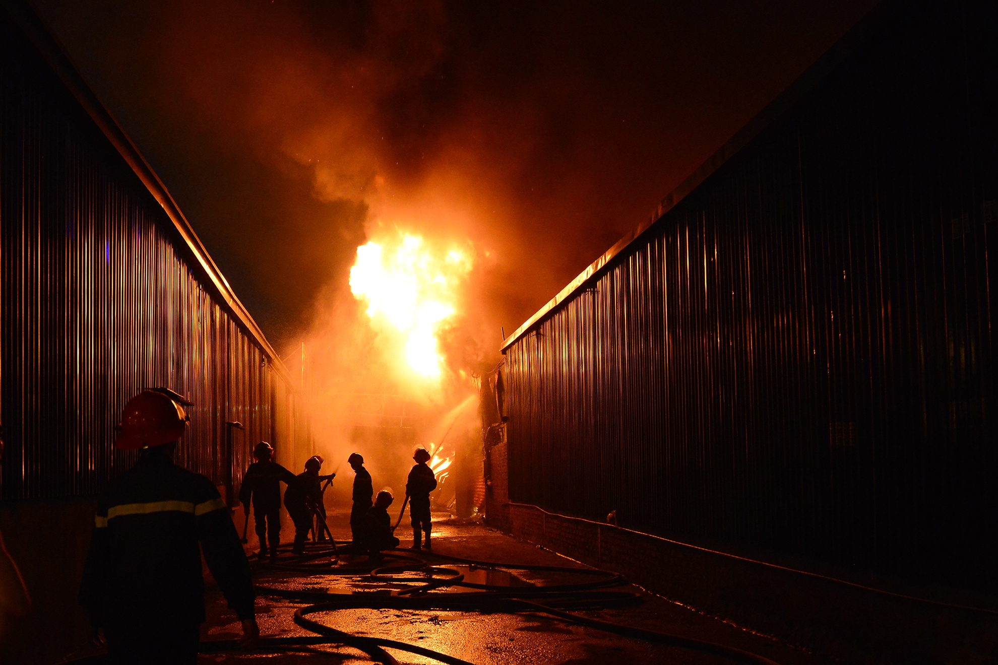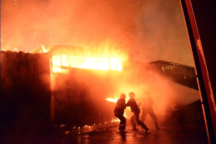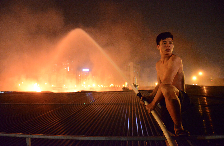 | Vụ cháy lớn xảy ra tại khu đô thị Nam Trung Yên (Hà Nội) tối 18/10 ngoài lính cứu hỏa với 10 xe tiếp cận hiện trường còn có sự tham gia của nhiều người dân. Khu vực này gồm nhiều cửa hàng ăn uống và garage ôtô, đội PCCC dù tiếp cận được vị trí qua lối đi chính vào giữa khu nhà xưởng tại mặt phố Dương Đình Nghệ nhưng không dễ dàng tác nghiệp. |