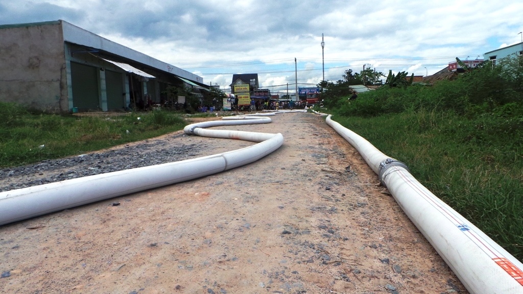| Lãnh đạo Sở PCCC quyết định triển khai phương án chặn từng đoạn cống để hút nước ra ngoài. Lúc này máy bơm công suất lớn, máy hút bùn, ván gỗ và cát được đưa tới hiện trường. Hàng trăm người dân đã hỗ trợ lực lượng chức năng. |